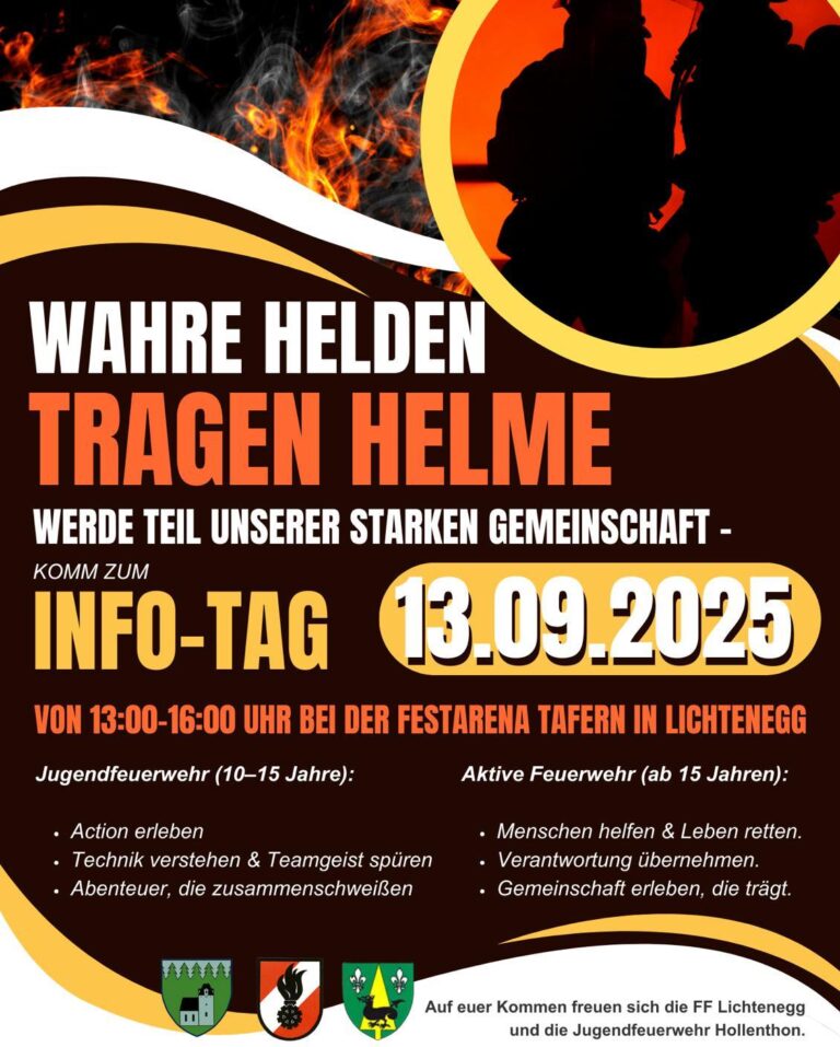 Am 13.09.2025 veranstaltete die FF-Lichtenegg einen Infotag um neue Mitglieder zu werben. Gerade aus den jüngeren Reihen durften wir uns über einige Besucher freuen und konnten die Tätigkeiten in der Feuerwehr etwas näher bringen! Unser Motto “gemeinsam stark” ist nur möglich, wenn wir immer mehr werden, die Ihre Freizeit für die Sicherheit aller zur Verfügung stellen.