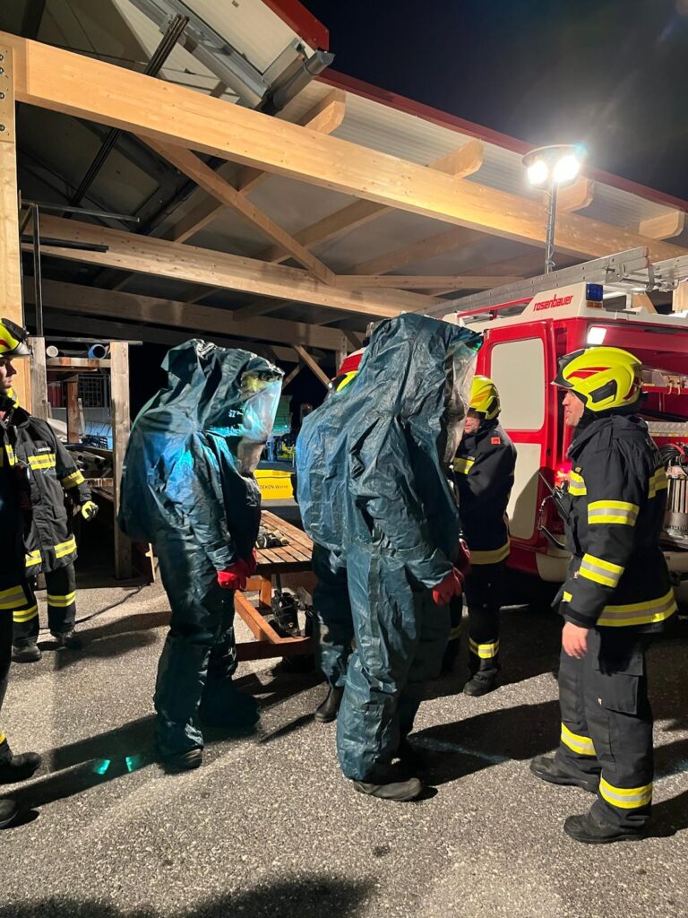 Am Mittwoch, dem 12.11.2025 fand unsere allmonatliche Mittwochsübung statt. Dankenswerterweise ausgearbeitet von Gallei Markus und Johannes Zitterbayer. Da Markus Gallei auch Sachbearbeiter Schadstoff ist, wurden die Schutzanzüge beübt und außerdem wurde Airbagauslösungen simuliert, mit und ohne Airbagrückhaltesystem. Dies verdeutlichte die Wirkung und Notwendigkeit eines solchen Rückhaltesystems.