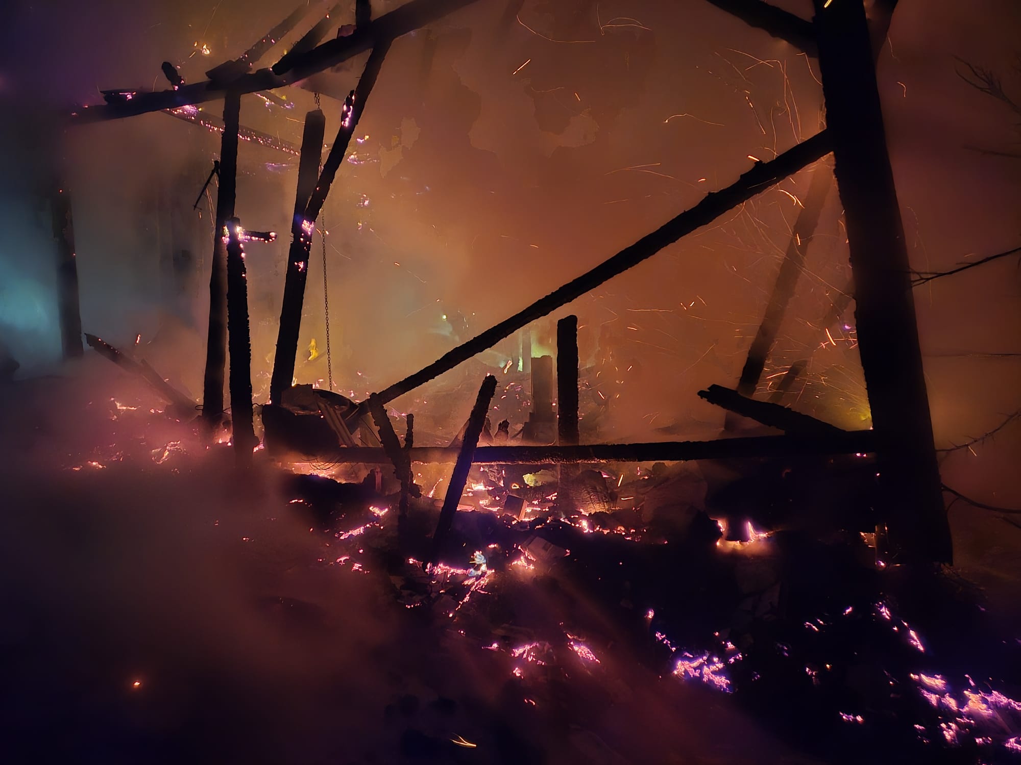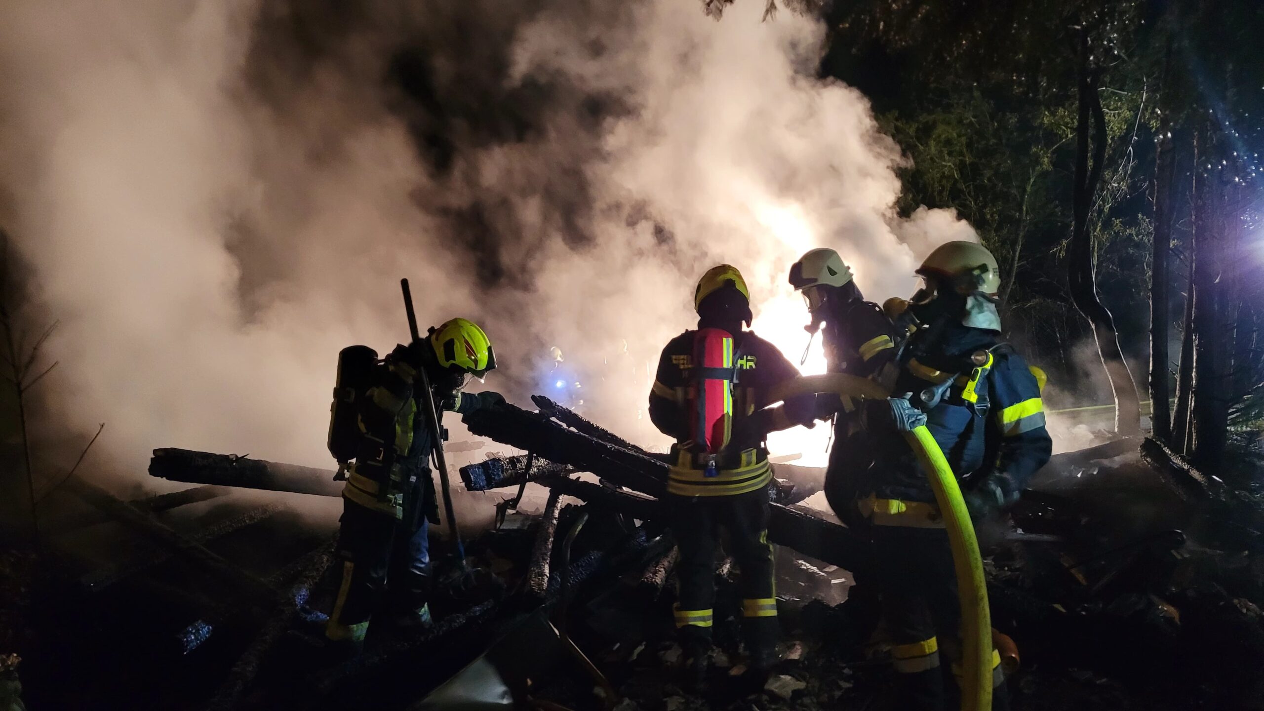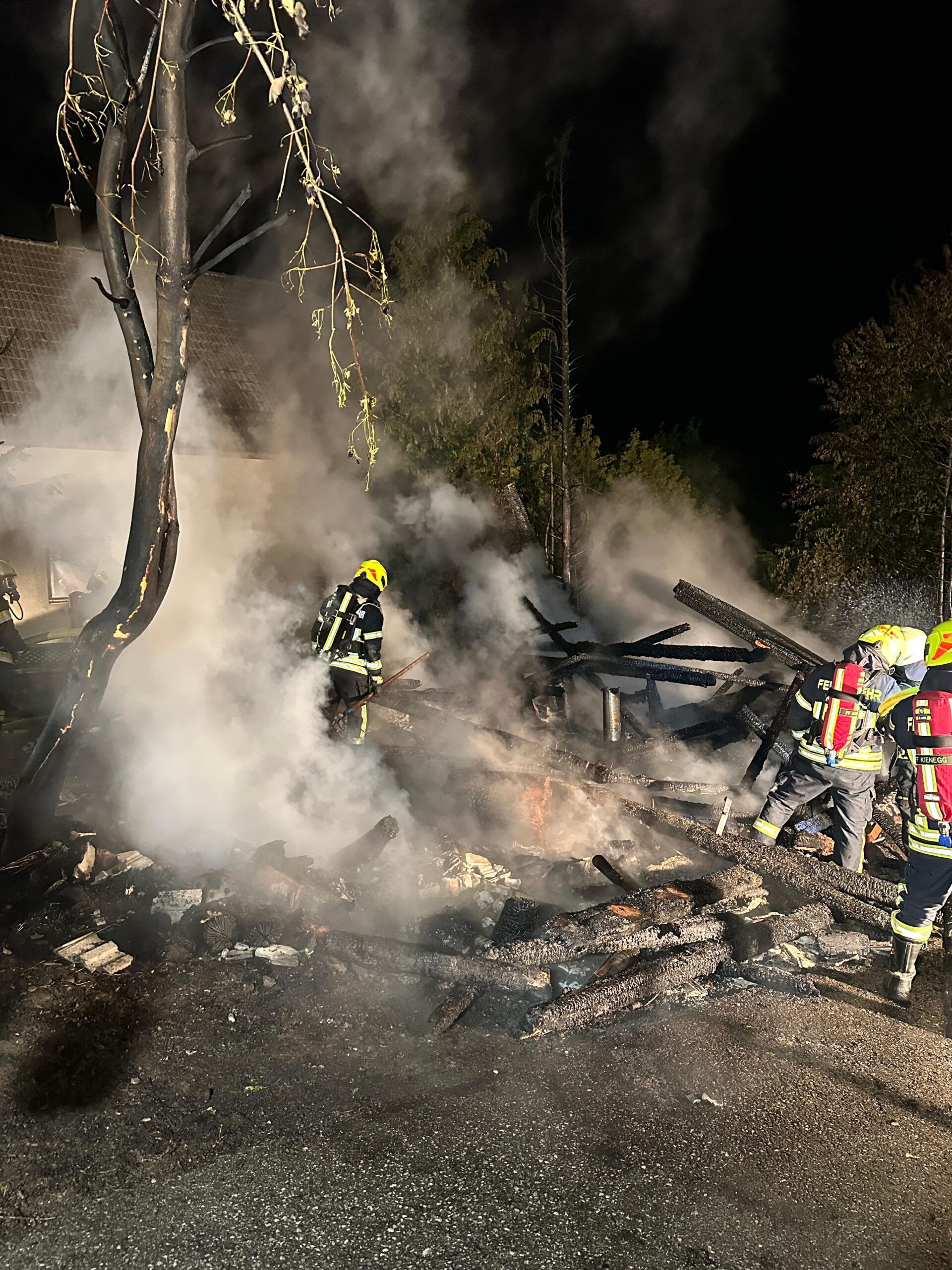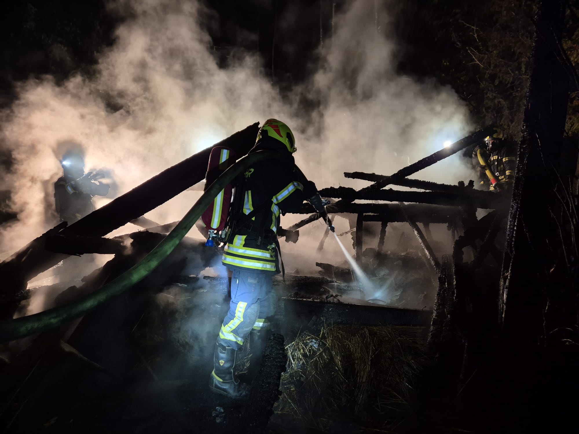 Bereits auf der Anfahrt war der Feuerschein deutlich sichtbar – vor Ort stand ein Nebengebäude in Vollbrand. Durch den starken Funkenflug drohte das Feuer auf das angrenzende Wohnhaus überzugreifen.