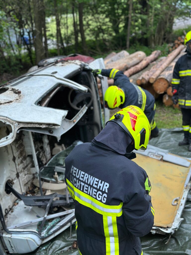 Am 07.05. wurden bei der Mittwochsübung mehrere technische Einsatzmittel beübt, unter anderem der Greifzug, die Sicherung eines KFZ mittels Steckleitern und das Anwenden von schwerem Rettungsgerät (Schere/Spreitzer).