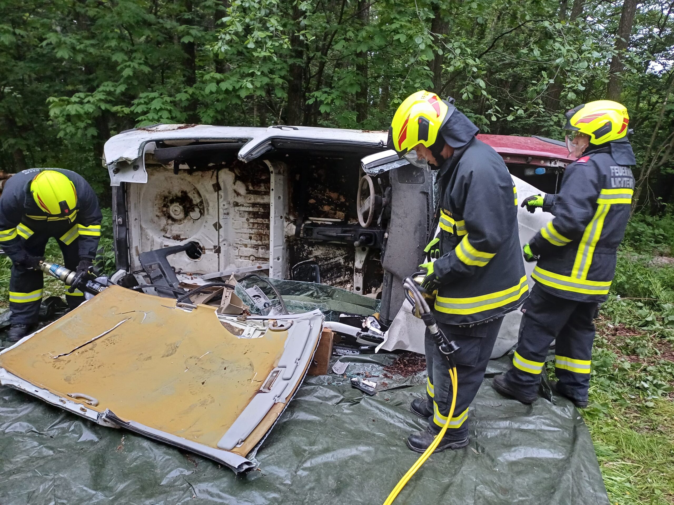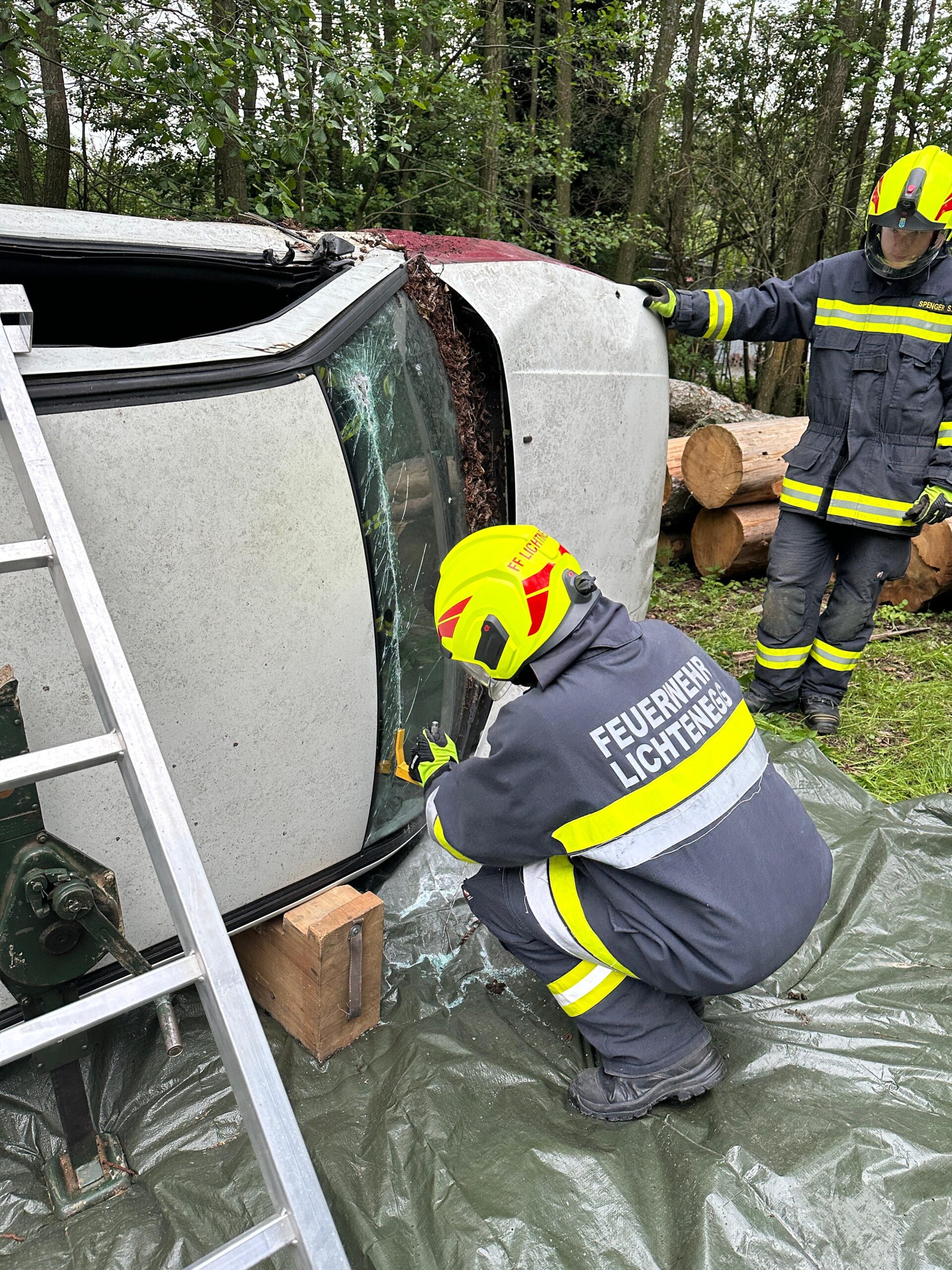 Am 07.05. wurden bei der Mittwochsübung mehrere technische Einsatzmittel beübt, unter anderem der Greifzug, die Sicherung eines KFZ mittels Steckleitern und das Anwenden von schwerem Rettungsgerät (Schere/Spreitzer).