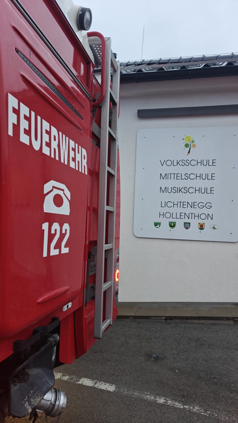Morgendlicher Einsatz für die Feuerwehr Lichtenegg in der Mittelschule Lichtenegg. Ein Brandmelder hatte Alarm ausgelöst. Sofort machten sich 8 Kameraden auf den Weg, um die Lage zu prüfen. Vor Ort stellte sich heraus, dass es sich Gott sei Dank um einen Täuschungsalarm handelte und der Rauchmelder durch Staubentwicklung auslöste.